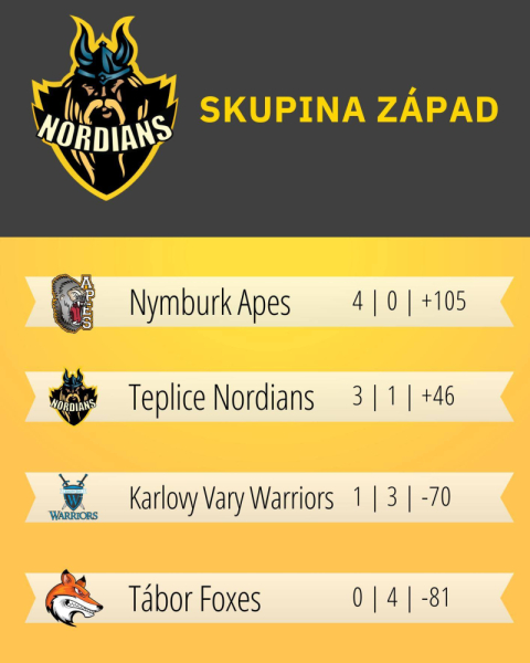 Všechny týmy mají za sebou 4 ze 6 zápasů a tabulka skupiny Západ je stále otevřená. Nordians drží druhé místo s bilancí 3 výher a 1 porážky, ale nic ještě není rozhodnuto.