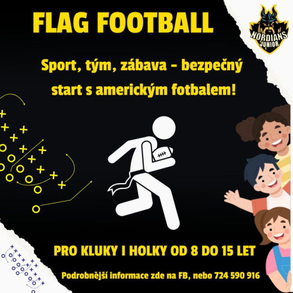 Nová příležitost pro kluky i holky od 8 do 15 let vyzkoušet americký fotbal v bezpečné bezkontaktní verzi – flag football.